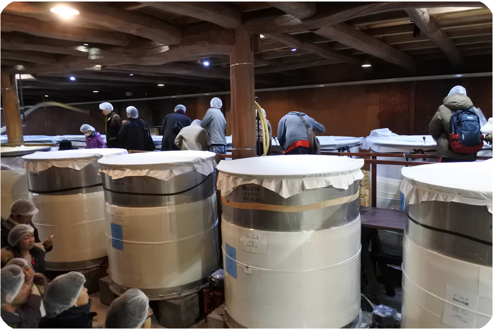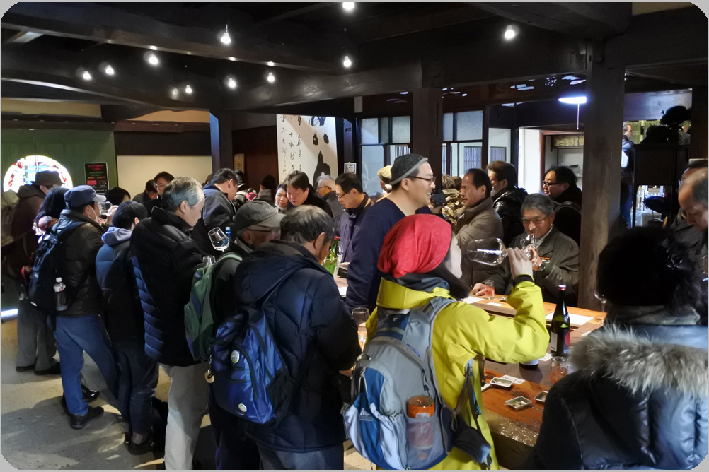 土曜日は晴れ、10:00開店と同時にプレミアム試飲のお客さまで19の予約席一杯になりました。日曜日朝方雪、細やかな雪が・・・開場前にはやみましたが心配でした・・・しかし開店と同時に満席ありがたいことです。プレミアム試飲500円、裏大吟醸愛山など10種類の酒から3品撰んで試飲します。お客さまの反応は「酒質に特徴があり飲み比べが楽しい~」そうです。気に入ったお酒を購入いただきありがとうございます。試飲が終わったら蔵見学に行きましょう。今は大吟醸仕込みの最盛期、仕込み蔵は芳醇な香りが漂っています。