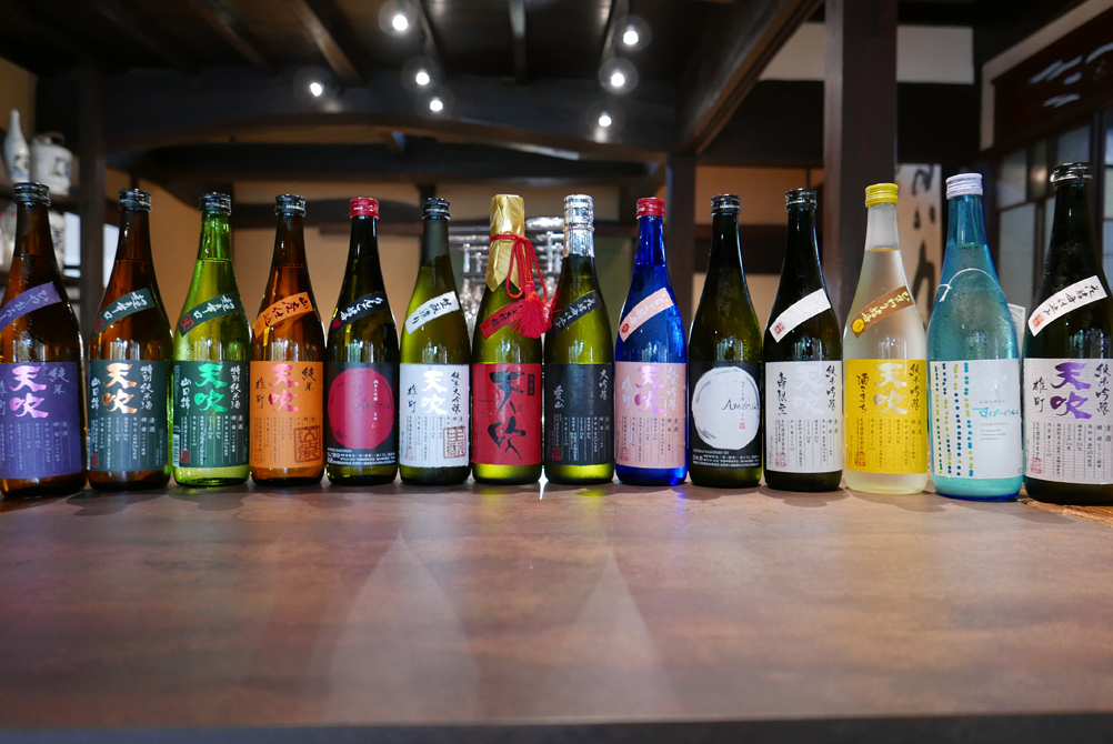 酒粕で造った天吹 吟醸粕取焼酎25%、原酒は度数36% ロックが旨いですよ! 梅酒、日本酒、イタリアのブラットオレンジで造ったリキュール 人気です。