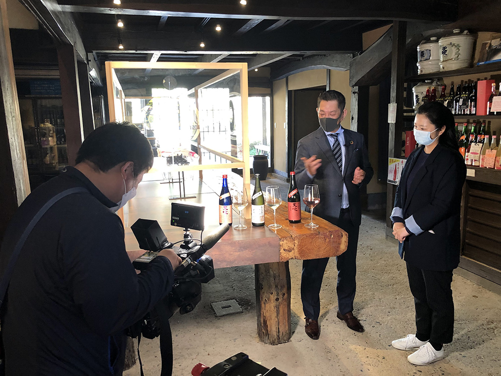 取材の目的は(RCEP)協定で以前と比べて何が変わりますか、日本酒が中国向け輸出に関する今後の展望は?などなど。