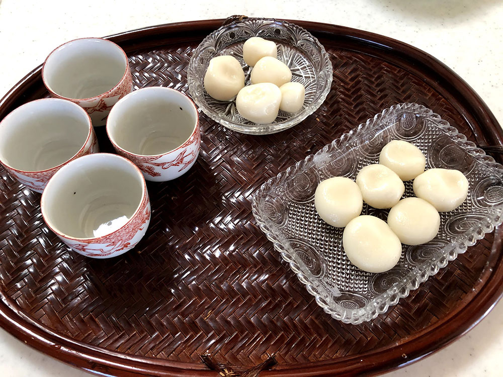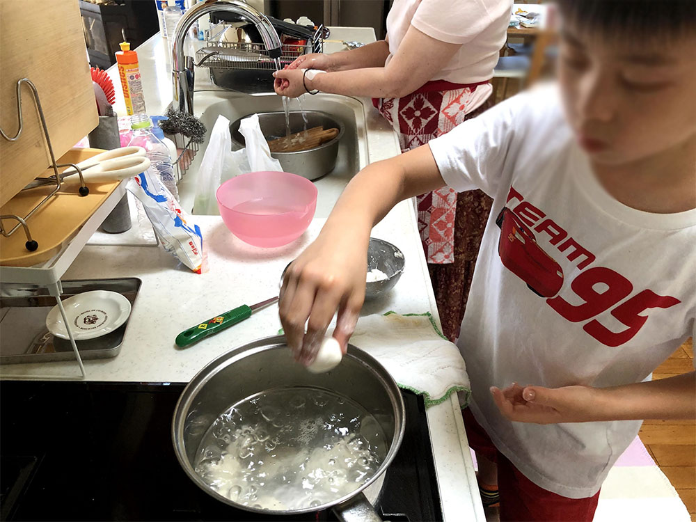 お供えするお団子作りを手伝います。
