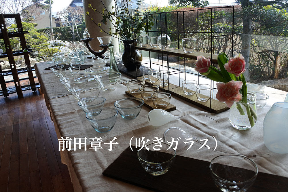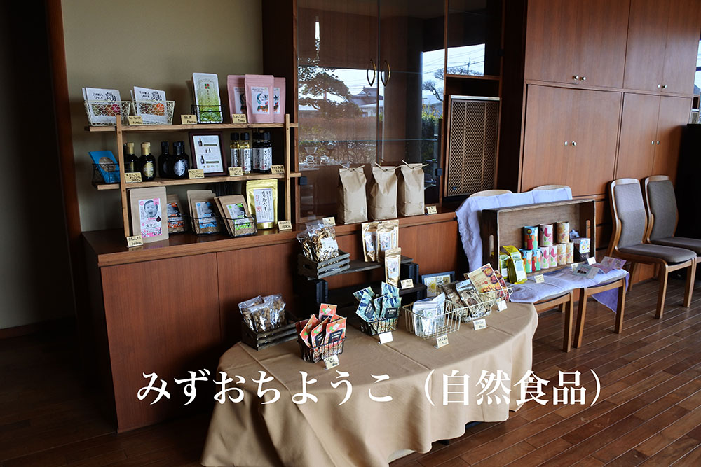 ゲストルームでは前田章子さんの吹きガラス、みずおちようこさんの野菜と自然食品の販売。