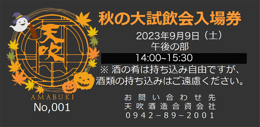 申込方法: 天吹酒造販売のネットショップ チケット販売で入場整理券を事前申込下さい。午前の部、午後の部から撰んで予約して下さい。