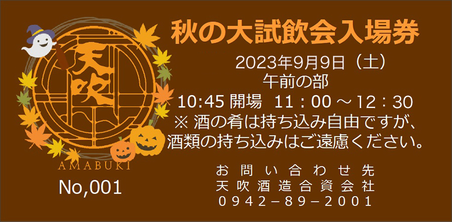 9月9日開催予定「秋の大試飲会」参加申込が順調で午後の部完売しました。午前の部はまだ空席がございます。