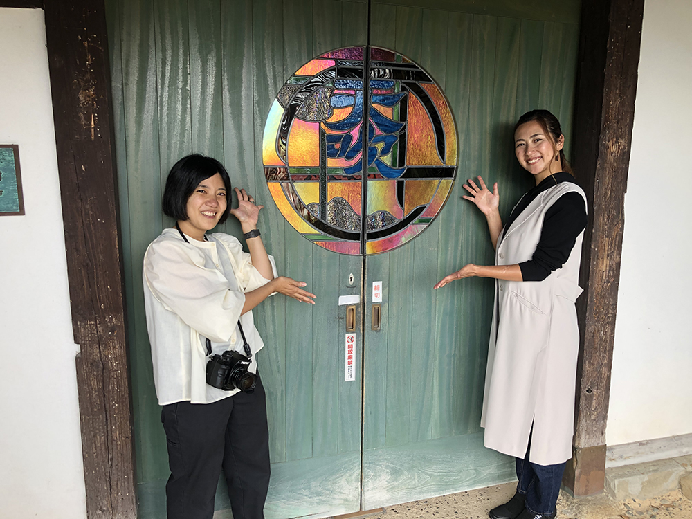 仕込み風景、試飲の様子、会社入り口ステンドグラスなどなど撮影、今回はみやき町のご紹介だそうです。