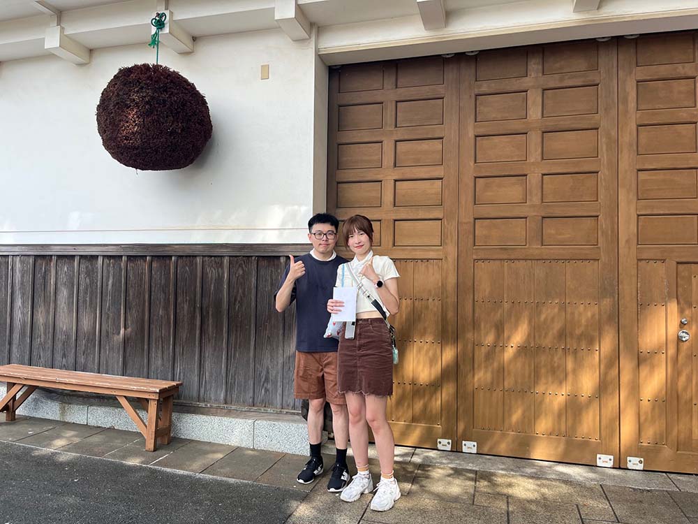 “sugidama”と英語でご案内したので、漢字ではどのように書くのかお尋ねをいただき、「杉玉」と紙に書いてお伝えいたしました。