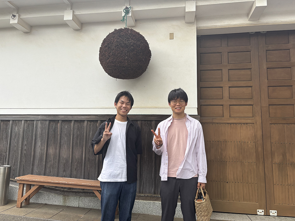 緑色の時は「新酒ができたよ」というサインになり、茶色の色が深まっていくほど「熟成が進んだよ」ということを示します。杉玉の色が変わると、それが意味するサインも変わっていくのを面白いと感じていただけたようでした。