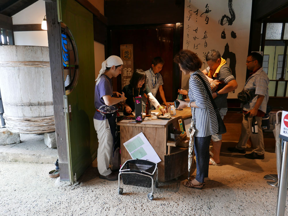 早めに受け付けを開始、蔵入り口でウエルカムドリンク「純米大吟醸 中汲み」を差し上げました。