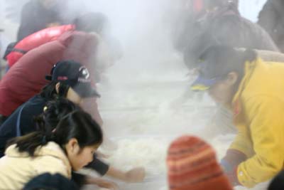20日日曜日お米とお酒の学校、田植え、稲刈り、今回は「仕込み」が行われました。 総勢46名の方に参加いただきました。 酒蔵の入り口で手足の消毒をして蔵に入ります。麹米の引き込み、酒母仕込み、醪仕込みとそれぞれ別れて担当します。 蒸し上がった酒米をしゃもじで素早く拡げ、熱気を抜きます。もうもうと湯煙が立ちこめる中作業は進みます。 みなさま熱心に取り組んでいただきました。 仕込みのシーンでは櫂棒で撹拌している姿を記念撮影です。 日本酒は酔うための道具ではない、最初は口の中に少量含み、舌の上で温め、香りと味を感じて、飲み込んで欲しい。日本酒は食事を美味しくし、ストレスを発散し、会話を楽しくする人生の友であり、適量飲めば薬であるという蔵元のメッセージを聞いていただきました。 数日後、仕込みの様子を特集します。お楽しみに。 酒造り日記をブログで掲載しています。 http://blog.goo.ne.jp/kurabito-sake